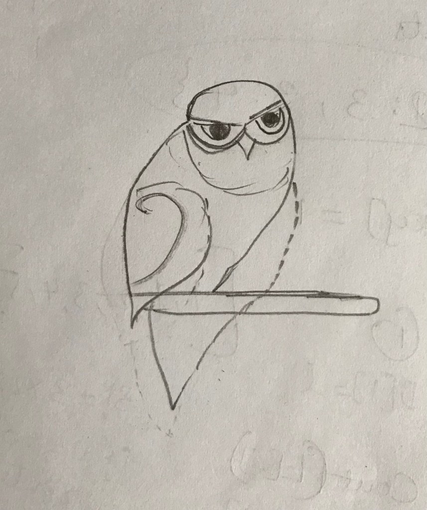 Step 3 : Third , then draw some wiggle on the face and the legs of the owl.