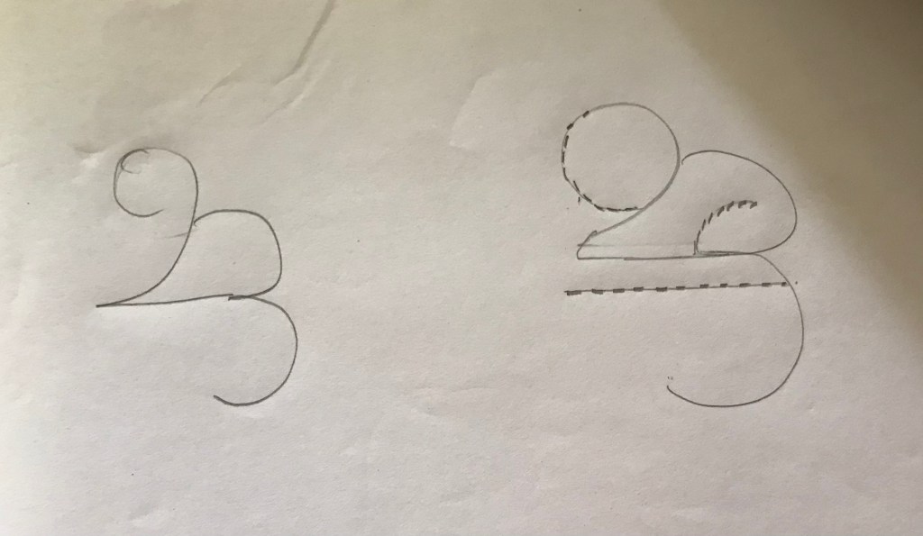 Step 1 : First , Take any size paper and draw a Two and a three combined .