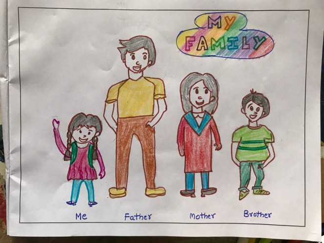 My parents,grandparents,brother and sister together make my family.Our family members are our first friend.They love and take care of us . Our friends and pets are a past our family too .I love my family.